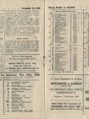 ๐ฅ 20 Nov 1948, Villa 0-1 Everton, Villa Park