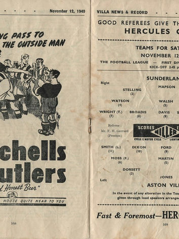 ๐ฉ 12 Nov 1949, Villa 2-0 Sunderland, Villa Park