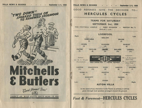 ๐จ 2 Sep 1950, Villa 1-1 Liverpool, Villa Park