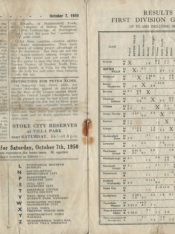 ๐ฉ 7 Oct 1950, Villa 3-0 Newcastle, Villa Park