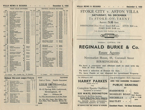๐จ 2 Dec 1950, Villa 3-3 Everton, Villa Park