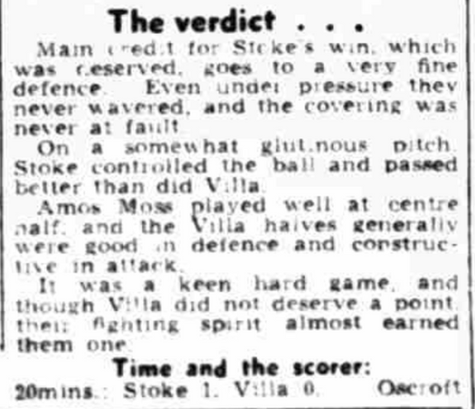 ๐ฅ 9 Dec 1950, Villa 0-1 Stoke, Victoria Ground