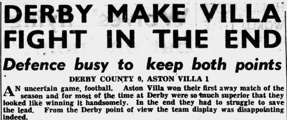 ๐ฉ 30 Aug 1952, Villa 1-0 Derby, Baseball Ground