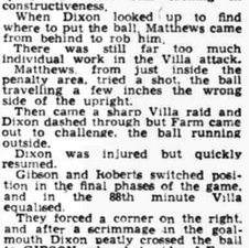 Villa concede on 4' and hit an equaliser on 88' as they are held at Bloomfield Road,