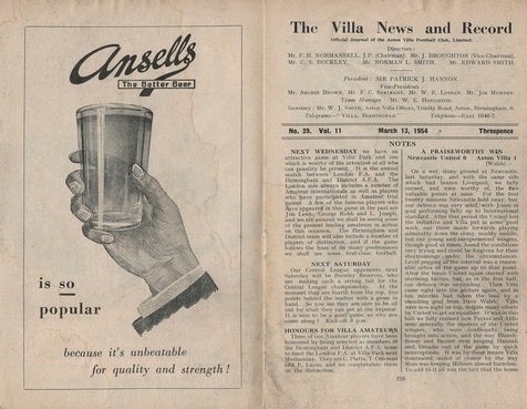 ๐จ 13 Mar 1954, Villa 2-2 United, Villa Park