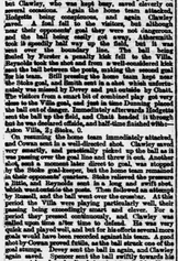 As we said before, the superiority of the Villa was most marked. Their forwards combined beautifully, and shot well, and, but for the exceptionally fine goal-keeping of Clawley, the score would undoubtedly have been much heavier than it was.