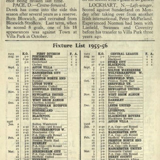 Forward Joe Tyrrell makes his last appearance for Villa before moving to Millwall in March 1956. Tyrrell played for Villa between 1953-54 and 1955-56 making 7 appearances and scoring 3 goals.