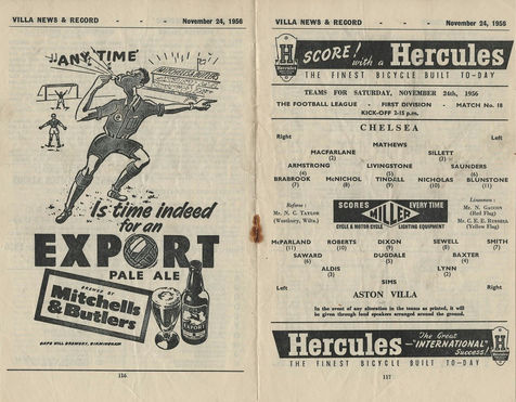 ๐จ 24 Nov 1956, Villa 1-1 Chelsea, Villa Park