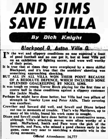 ๐จ 29 Dec 1956, Villa 0-0 Blackpool, Bloomfield