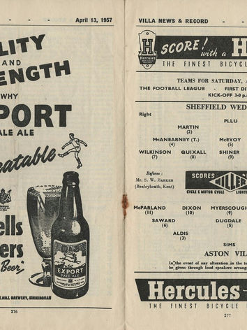 ๐ฉ 13 Apr 1957, Villa 5-0 Wednesday, Villa Park