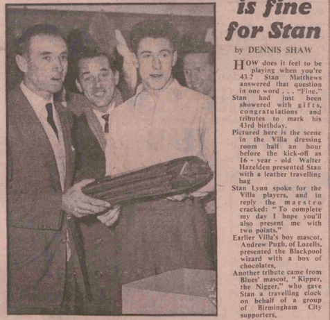 Villa draw with Stanley Matthews' Blackpool on his 43rd birthday as neighbours Birmingham are hit for 8 by Burnley.