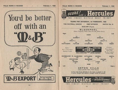 ๐จ 1 Feb 1958, Villa 1-1 Blackpool, Villa Park