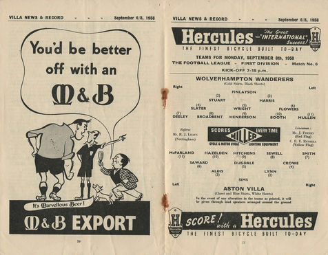 🟥 8 Sep 1958, Villa 1-3 Wolves, Villa Park