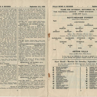 Meanwhile, full back John Sharples made his Villa debut aged 24 after moving from Heath Town in October 1955.