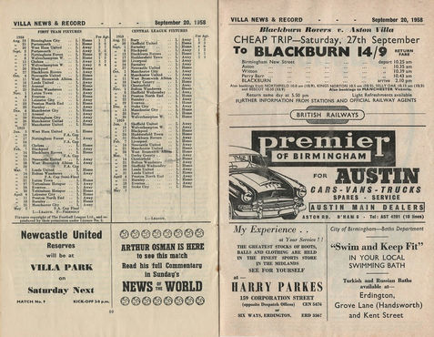 🟨 20 Sep 1958, Villa 1-1 Blackpool, Villa Park