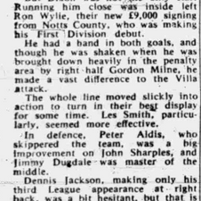 Nigel Sims, Peter Aldis, Dennis Jackson, Johnny Dixon and Ron Wylie (debut) replace Bill Beaton, Stan Lynn, Gordon Lee, John Sharples and Wally Hazelden.