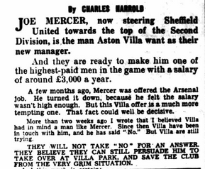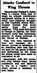 Over a month since the sacking of Eric Houghton, Villa finally have a new manager as Joe Mercer swaps the relative calm of Sheffield United for the Villa hotseat. Villa however don't respond immediately and are well beaten at Old Trafford to remain bottom of the first division.