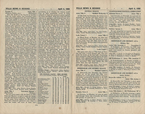 🟥 4 Apr 1959, Villa 1-2 Leicester, Villa Park