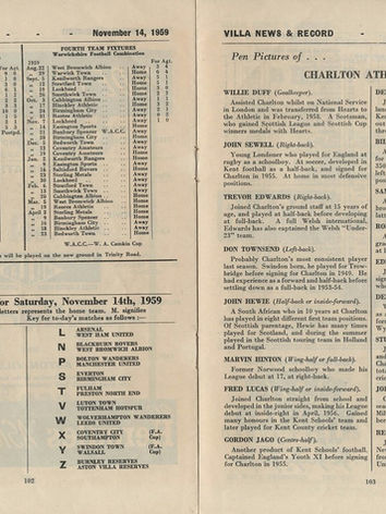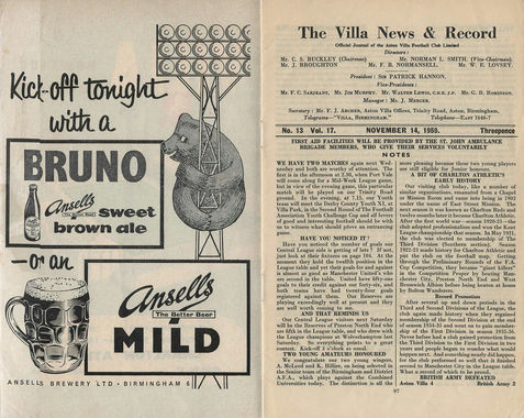 ๐ฉ 14 Nov 1959, Villa 11-1 Charlton, Villa Park