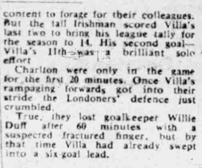 Joe Mercer's Villa bounce back from their second defeat in seventeen to record an astonishing win over Charlton as they hammer the Londoners eleven goals to one at Villa Park. As a result Villa make it eleven wins, five draws and two defeats in eighteen division two games so far this season as their excellent start to life in the second tier continues.