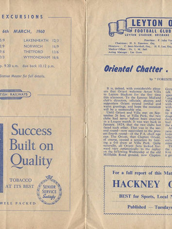 ๐จ 13 Feb 1960, Villa 0-0 Orient, Brisbane Road