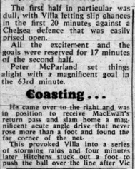 Joe Mercer's Villa open the 1960-61 season and their first season back in the top flight since 1958-59 with a win over a Chelsea side who narrowly avoided relegation alongside Villa's neighbours Birmingham in 1959-60. Villa's win was their first top flight victory since March 1959 and only the seventh in Mercer's now 73 game reign.