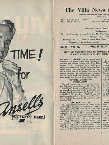 Joe Mercer's Villa return to Villa Park after successive away games and turn the tables on West Ham - their conquerers at Upton Park two games earlier. As a result Villa make it two wins, both at home, and two defeats, both away, on their return to the top flight with ten goals scored and thirteen conceded.