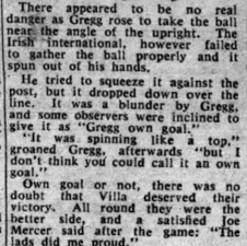 Joe Mercer's Villa continue their 100% home win record to make it five wins, all at home, a draw and three defeats, all away, in nine games following their return to the top flight. As a result, Mercer has now won fifteen of the thirty seven games he has led Villa in division one, losing fifteen.