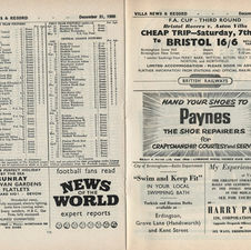 Villa's return to division one had been an unqualified success so far as a small squad had dealt admirably with a fixture pile up to record some impressive League results and to progress in the inaugural League Cup ahead of their first FA Cup fixtures of the season.