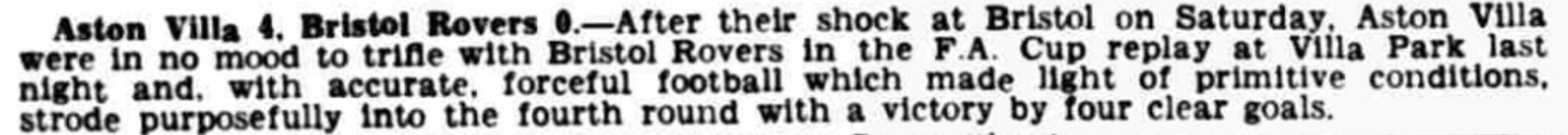 Joe Mercer's Villa face Bristol Rovers in the FA Cup third round replay at Villa Park just two days after the original fixture.