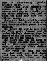 Villa are beaten by champions elect Spurs to continue an unwanted record of post-war defeats against the North London side. Villa face Tottenham again the following week - this time in the FA Cup.