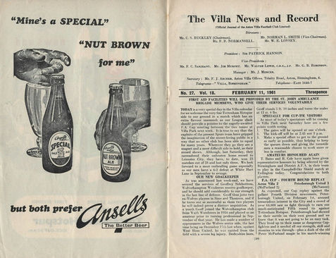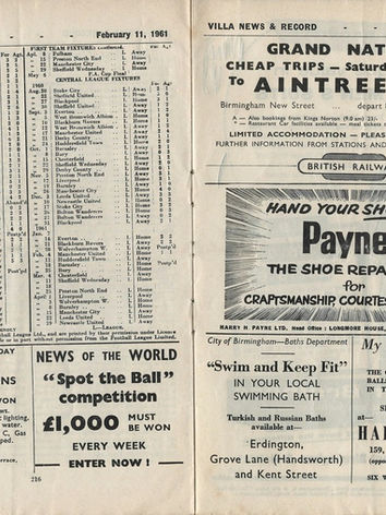 ๐ฅ 11 Feb 1961, Villa 1-2 Spurs, Villa Park