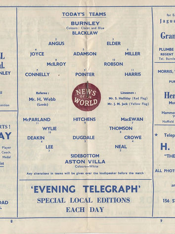 ๐จ 25 Mar 1961, Villa 1-1 Burnley, Turf Moor