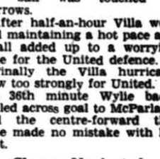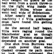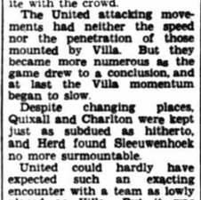 Villa batter United 1-1 with a masterclass performance from Peter McParland and his young comrades. United equalise with their first shot. It was forever thus. Villa sit 18th.