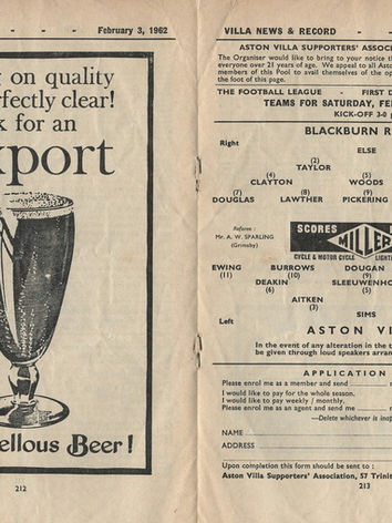๐ฉ 3 Feb 1962, Villa 1-0 Blackburn, Villa Park