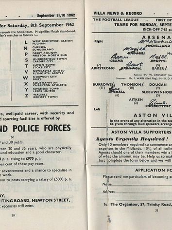 ๐ฉ 10 Sep 1962, Villa 3-1 Arsenal, Villa Park