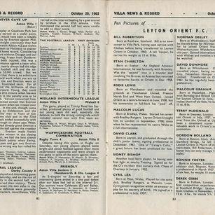 ๐ฉ 20 Oct 1962, Villa 1-0 Orient, Villa Park