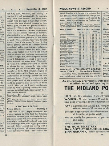 ๐ฅ 3 Nov 1962, Villa 1-2 Fulham, Villa Park