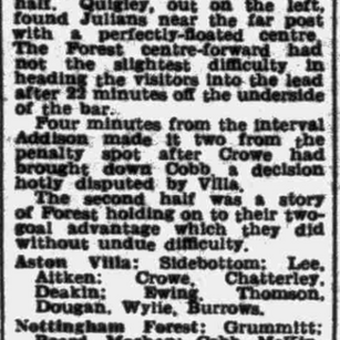 | 41' Goal, 0-2, (Nottingham Forest, pen), Colin Addison