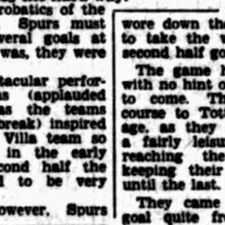 Villa can't make it consecutive home wins despite taking the lead twice as they are beaten by Spurs & Jimmy Greaves.