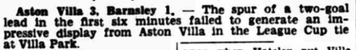 Villa make a professional job of getting past third division Barnsley in the League Cup but miss out on an emphatic win having been two up inside the first six minutes.