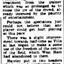 The headlines said it all, surrender, as Villa lose a fifth consecutive game and are dumped out of the League Cup by West Ham. On the bright side however, Mick Wright, just turned 17 had another excellent game for Villa. Once again though Joe Mercer was absent from the dugout on scouting duty.