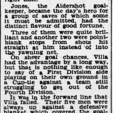Villa face Aldershot for the first time in competitive football, Aldershot become the 91st team that the Villa first team has played in League or Cup football.