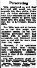 Villa turn the form books on their head by taking a deserved two goal lead against high flying Liverpool but the merseysiders soon hit back and Villa have to settle for another draw.