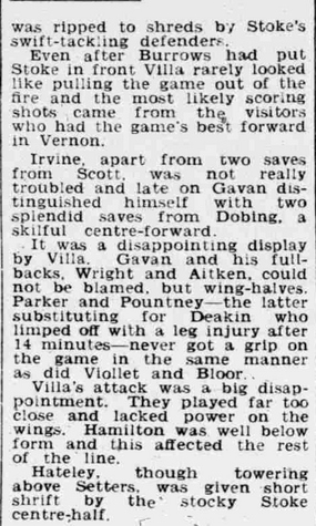 Dick Taylor's Villa lose for the second time in three to make it seven wins, two draws and eight defeats in seventeen League fixtures this season. Meanwhile, former Villa stalwart Harry Burrows hits the killer blow for Stoke.