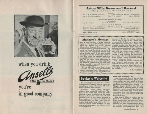 Dick Taylor's Villa make it a draw and a defeat in two home games so far this season. Despite winning three of the final five matches of 1965-66, Taylor had now presided over eight defeats in fourteen.
