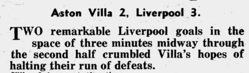 🟥 1 Oct 1966, Villa 2-3 Liverpool, Villa Park