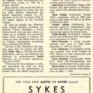 Meanwhile Neil Rioch made his Villa debut aged 19 after moving from Luton Town in July 1969 and goalkeeper Evan Williams made his debut for Villa aged 26 having joined on loan from Wolverhampton Wanderers earlier this month.