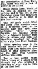 Tommy Docherty's Villa score their first league goal and secure their first point of the season to make it a draw and two losses in three division two games so far this season.