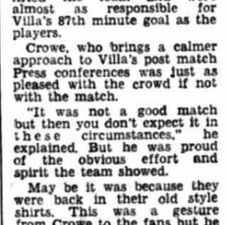"I'd send them out in claret and blue jock straps if I thought it would do any good [after Crowe reverted to old style Villa shirts for the game].
